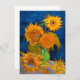 Tarjeta con la base de Vicente van Gogh con cinco girasoles (1888). Todavía la vida representa cinco hermosos girasoles en un jarrón verde. Un gran regalo para los aficionados al post-impresionismo y al arte holandés.