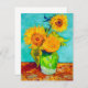 Tarjeta con el cuadro de vida de Vincent van Gogh que representa un ramo de girasoles en un jarrón verde. Parte de su versión inicial en la serie Arles Sunflowers. Un gran regalo para los amantes de las pinturas florales, el posimpresionismo y el arte holandés.