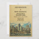 Vintage Vancouver Wedding Invitation con vistas al horizonte de la ciudad con el puerto en primer plano. Este moderno diseño retro de mediados de siglo es la manera perfecta de reunir a los huéspedes para su boda de destino en Vancouver Canadá.