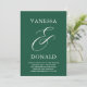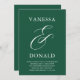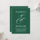 Invitación nupcial moderna con un diseño sencillo y mínimo con sus nombres y un elegante grabador y en un formato grande sobre los detalles del evento. El tema de color es de color verde esmeralda y puede cambiarse en la herramienta de edición de diseño.
