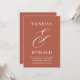Invitación nupcial moderna con un diseño sencillo y mínimo con sus nombres y un elegante grabador y en un formato grande sobre los detalles del evento. El tema de color es terracota y puede cambiarse en la herramienta de edición de diseño.