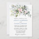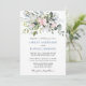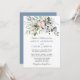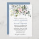 Moderna y elegante acuarela La tarjeta de invitación a la boda de la vegetación botánica incluye hojas de eucalipto, follaje botánico verde, hojas azul polvorientas, delicadas flores rosadas y otros hermosos paisajes botánicos. Dusty Blue Back.