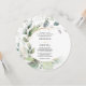 Este elegante diseño presenta una suave cortina de agua de eucalipto, vegetación y adornos dorados. Haga clic en el botón Personalizar y "Haga clic para más personalizares" para editar el color de la redacción del guión. Vea toda la colección para ver más elementos coincidentes.
