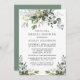 Moderna y elegante acuarela La tarjeta de invitación a la ducha de la novia con vegetación botánica incluye hojas de eucalipto, follaje botánico verde, hojas azul polvorientas y otros hermosos paisajes botánicos. Sage Green Back.