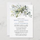 Moderna y elegante acuarela La tarjeta de invitación al almuerzo para la celebración de novias de vegetación botánica incluye hojas de eucalipto, follaje botánico verde, polvorientas hojas azules y otros hermosos paisajes botánicos. Dusty Blue Back.