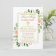 Moderna y elegante acuarela Floral rosa Primera invitación a la comunión sagrada incluye rosas rosas rosas rosas, hojas de eucalipto y otros hermosos paisajes de vegetación botánica. Cruz de Oro.
