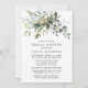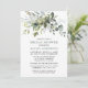 Moderna y elegante acuarela La tarjeta de invitación a la ducha de la novia con vegetación botánica incluye hojas de eucalipto, follaje botánico verde, hojas azul polvorientas y otros hermosos paisajes botánicos. Sage Green Back.