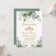 Moderna y elegante acuarela La tarjeta de invitación Quinceañera Boda de Verdor Botánico incluye hojas de eucalipto, follaje botánico verde, hojas azul polvorientas y otros hermosos paisajes botánicos. Sage Green Back.