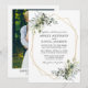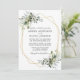 Moderna y elegante acuarela La tarjeta de invitación a la boda de la vegetación botánica incluye hojas de eucalipto, follaje botánico verde, hojas azul polvorientas y otros hermosos paisajes botánicos. Marco geométrico dorado, foto hacia atrás