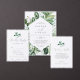 Esta invitación a almorzar con una novia verde de un cazador de bosques es perfecta para una ducha de novias en verano o otoño. El moderno diseño de boho cuenta con exuberantes hojas de color esmeralda, salvia y verde oliva y productos botánicos con estampados de elegantes flores blancas.