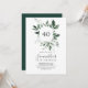 Esta invitación de 40 años de vegetación esmeralda es perfecta para una fiesta de cumpleaños boho. El diseño es elegante y rústico, con unas hojas de acuarela verde oscuro y un eucalipto con un toque bohemio moderno.