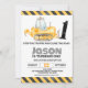 Invitación de primer cumpleaños para vehículos de construcción de tráfico infantil Cuta la invitación de cumpleaños temática de construcción de un niño pequeño con una excavadora y un gran número. Esta parada del tráfico o en construcción la invitación de primer cumpleaños es ideal para el primer cumpleaños de un niño.