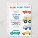 Vehículos multicolores Transporte Invitación al cumpleaños Cualquier invitación de cumpleaños de vehículos multicolores de edad que incluya un taxi, un camión de basura, una camioneta y una furgoneta. Ideal para los niños que transportan fiesta de cumpleaños temática.