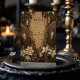 Entre en las sombras con este diseño de estilo gótico de la velada de Halloween. Con ataúdes oscuros, velas parpadeantes y lirios blancos en un contexto espeluznante, este elegante artículo crea el ambiente para una celebración escalofriante y sofisticada. Perfecto para los que quieren que su noche de Halloween sea inolvidable.