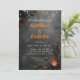 Invitación a la fiesta de Halloween para adultos con disfraces y cócteles. El diseño presenta un fondo oscuro, bosques, velas y cráneos. Artículos de fiesta de Halloween coincidentes en nuestra tienda. Personaliza tus datos.