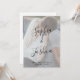 Este moderno salto de la fecha presenta caligrafía de bonito y un elegante estilo falso de terciopelo. En la parte delantera de la tarjeta, los nombres de la pareja están escritos en un guión moderno y negro. A continuación, agregue la fecha y ubicación del boda. El diseño de la tipografía negra sobrepone una foto completa (orientación vertical). En la parte posterior de guardar la fecha, añada otra foto y detalles del boda como el sitio web del boda.