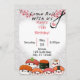 Ven a rodar con nosotros invitación de cumpleaños de sushi con sushi lindo y flores de cerezo japonesas