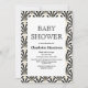 Bonitas invitaciones a la ducha de bebé con temática vintage de los años 20. Cuentan con un elegante pero audaz diseño de ventiladores de estilo Art Déco blanco y negro.