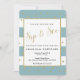 Visita y Sip personalizada Invite al bebé - Aqua & Gold: Celebra tu nueva llegada con este elegante Sip y Ver invitación. Con rayas verde azuladas/acuáticas con puntos dorados, es el diseño unisexo perfecto para dar la bienvenida a los amigos y familiares para que conozcan su conjunto de alegría. Personalizar con el nombre de su bebé y los detalles del evento para crear un recuerdo memorable para sus seres queridos. Diseñado por The Arty Apples, esta invitación es ideal para reuniones informales, duchas para bebés o celebraciones posteriores al nacimiento, por lo que es fácil compartir la alegría de su nueva adición con estilo.