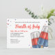 Haz que tu celebración brille con estas invitaciones a la fiesta del 4 de julio, la combinación perfecta de diseño bonito, caprichoso y moderno. Con una tipografía lúdica, un guión elegante de caligrafía y acentos clásicos rojos, blancos y azules, estas invitaciones son ideales para fiestas del 4 de julio y reuniones festivas de verano. Ya sea que estés hospedando una barbacoa en el patio o un picnic con fuegos artificiales, estas simples pero impresionantes invitaciones marcan el tono para una celebración divertida y patriótica!