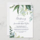 Este verano es una invitación a disfrutar de la vegetación, ideal para una elegante devoción al bebé de medio verano. El diseño botánico presenta un diseño exuberante con eucalipto de acuarela pintada, vegetación y hojas verdes.