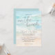 Sencillo Verano Acuarela Marítima En La Invitación A La Boda De Playa. Un agradable fondo azul y color marrón marrón marcan el escenario de un elegante boda costero. El fondo es una playa de color acuático, con un acceso a la orilla que se cruza con las olas del océano. No se trata de una interpretación literalmente y en la parte superior, sino de un entorno costero algo abstracto. La tipografía de escritura dulce comienza con el dicho "on the beach" y continúa a lo largo de la invitación. Mezclada con un sencillo estilo moderno para una atmósfera elegante pero relajada e informal. Las fuentes son un color gris oscuro, pero puedes cambiarlas a lo que quieras. Disponible en forma de invitación impresa, o como una invitación digital descargable que puede enviar por correo electrónico o que ha impreso localmente.