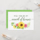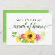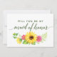 Este girasol de verano será mi tarjeta de honor es perfecta para un boda de primavera o verano. El diseño presenta una vegetación floral con girasoles amarillos brillantes y flores de gerbera rosa. Personalizar la tarjeta con el nombre de la novia y la criada de honor. Personaliza la parte posterior de la tarjeta con un mensaje personalizado.