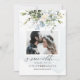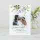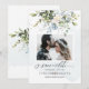 Diseños de PixDezines verde y flores acuarela flores azules polvorientas con eucalipto azul, tarjetas de fecha de guardar foto.