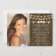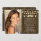 Añade tu foto favorita a esta floral y rústica hilera de luces dulces dieciséis invitaciones con una foto en verde azulados tonos azules, corales, verdes, marrones, blancos, amarillos y marrones con un hermoso fondo de madera que recuerda a una cerca de madera o a un barril. Una corona de laurel otoñal compuesta de bellotas, bayas, girasoles, tulipán rosa y flores blancas se sienta en una rama arbolada. La parte posterior de la invitación puede ser personalizada con el nombre del evento y personalizada con el nombre del chica de cumpleaños. Perfecto para una caída al aire libre, noche, campo, casa de campo, jardín o moda rural dulce 16. Las encantadoras luces de trineo y de hadas con un efecto bokeh se ven luminosas, cálidas y acogedoras. Obra de arte © Chrissy H. Estudios, LLC. Todos los derechos reservados.