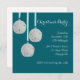 Invitación a la fiesta de los Navidades costeros. Colgando dólares de arena en un fondo de color verde azulado oscuro con texto en blanco roto. Las modernas tarjetas cuadradas vienen con sobres blancos, y los dólares de arena se pueden quitar para mostrar adornos tradicionales si su fiesta no es tropical.