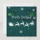 Invite a los huéspedes a su fiesta de vacaciones con esta Verde azulada invitación a los renos y a los sleigh de Santa's. El trineo de Santa, adornado con bayas huecas, está jalado por sus renos sobre un fondo verde azulado con copos de nieve caídos que puedes personalizar con los detalles de tu fiesta y RSVP. También hay artículos de regalo y de vacaciones disponibles con este diseño.