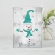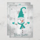 Invite a los huéspedes a su fiesta de vacaciones con este Verde azulado Fiesta de Navidades Cute Snowman. El diseño de la invitación incluye un lindo muñeco de nieve con un gorra, una bufanda y guantes adornados con copos de nieve grises y blancos sobre un fondo gris. Personalice los datos con su fiesta y RSVP. También hay artículos de regalo y de vacaciones disponibles con este diseño.
