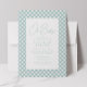 Una clásica gingham verde azulada enmarca esta dulce y simple invitación a la ducha de bebé. Con texto de personalizable, esta invitación a la ducha de bebé de gingham es perfecta para celebrar a un bebé o niña en el camino. La parte trasera está verde azulada de coordinación con puntos blancos. En la colección de Lea Delaveris Design también se pueden encontrar productos de fiesta de ducha para bebés. Esta invitación también está disponible como descarga digital de la invitación a la ducha de bebé.