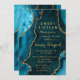 Invitación Verde azulado azul y oro agate dulce de mármol die