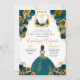 Invitación Verde azulado Blue & Gold Floral Elegante Quinceañ