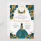 Invitación Verde azulado Blue & Gold Floral Elegante Quinceañ