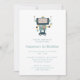 Invitación Verde azulado Blue Robot Gears Simple Primer cumpl
