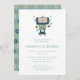 Invitación de primer cumpleaños a los juegos de robots azules verde azulados