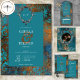 Invitación Verde azulado gótico Damasco de oro a dos lados B