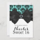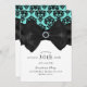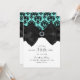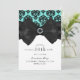 Invitación Verde azulado y negro Damask Bow Glam Moda Sweet 1