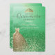 Invitación Verde brillo chic Dorado vestido tiara Quinceañera