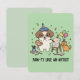 Esta invitación es una celebración de la creatividad y la ternura. Observa cómo un apuesto beagle, completo con gafas y sombrero de fiesta, aplica pintura en un lienzo, inspirado por su amigo felino, un gato ginger también listo para festejar con globos y un sombrero. Confeti disperso y suministros de arte como pinceles y libros preparan el escenario para un evento lleno de diversión. Si eres un amante del arte, un artesano o simplemente alguien que disfruta de un toque de encanto juguetón, este diseño es perfecto para ti. Es una forma fantástica de invitar a los invitados, infundida con personalidad y vibrantes buenas vibras para cualquier ocasión.