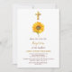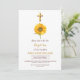 Acuarela de girasol rústica, floral, amarilla neutra, dorada y blanca invitaciones de bautismo. Cruz de oro, minimalista, invitaciones del bautismo de Boho.