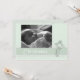 Elegante invitación de bautizo en verde menta con guarnecido de encaje y crucifijo ornamentado. Inserte la foto de su propio hijo para un conservador especial. Viene completo con sobres.