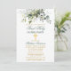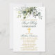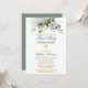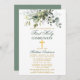 La moderna y elegante invitación a la Primera Santa Comunión incluye hojas de eucalipto acuarela y otros hermosos follajes de vegetación botánica. Cruz de Oro. Sage Green Back.