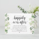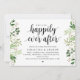 Tarjeta de invitación temática de tarjeta de título con hojas de verano de vegetación rústica moderna, escritura negra (con título de tarjeta: Antes de felizmente después). Es perfecto para la celebración de la cena de ensayo de su boda, antes de su mejor día. Agregue sus detalles en fuente / letra negra coincidente.