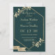 El verde esmeralda profundo y el beige del champán combinados con marcos geométricos y follaje crean una invitación moderna y única a sus nupciales, aunque romántica. Inversión sólida.