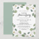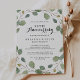 Esta invitación de aniversario de bodas de eucalipto verde para el 50º aniversario es perfecta para una sencilla celebración de aniversario de bodas. El diseño presenta ramas y hojas de eucalipto verde botánico dibujadas a mano.
