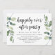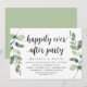 Tarjeta de invitación temática de eucalipto verde rústico moderno, con título: fiesta de feliz para siempre (con letra negra). Es perfecta para su recepción de boda y huida / celebración post-boda. Agregue sus detalles en fuente negra coincidente.