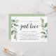 Tarjeta de invitación moderna rústica con tema de Verde Eucalipto y Letra Negra (con título de tarjeta: Nada lujoso, solo amor). Es perfecta para la recepción de su boda de huida de novios / fiesta de celebración post boda. Agregue sus detalles en fuente / letra negra coincidente.
